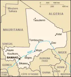 Mali jest największym państwem Afryki Zachodniej, położonym na styku Sahary i Sahelu, bez dostępu do morza. 75% jego powierzchni zajmuje Sahara. Nazwa kraju pochodzi od przedkolonialnego Imperium Mali, które powstało w XIII wieku; w czasie największego rozkwitu, sięgało aż po Atlantyk. Od XIX w. pod kontrolą francuską – obszar państwa wchodził w skład Francuskiej Afryki Zachodniej. Kraj uzyskał niepodległość w 1960 roku.