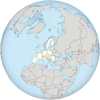 - ↑ Od Marsaskala w Republice Malty o współrzędnych geograficznych 35°51′40,9″N 14°34′34,3″E/35,861361 14,576194 do Zakintos w Grecji o współrzędnych geograficznych 37°48′50,9″N 20°37′48,8″E/37,814139 20,630222