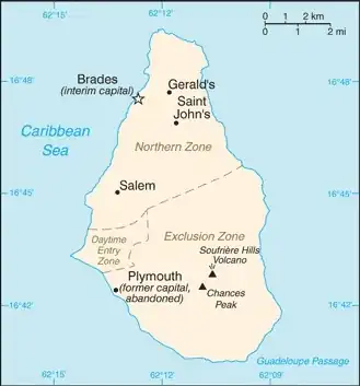 Montserrat poprzez wody terytorialne Morza Karaibskiego graniczy od północy z Antiguą i Barbudą, a od południa z Gwadelupą.