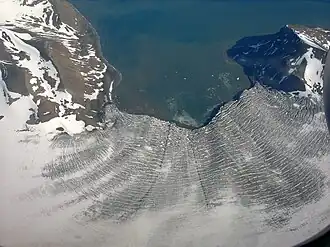 Ogromny udział mają jednak lodowce, które obejmują swym zasięgiem niemal 60% powierzchni. W wielu miejscach lądolód schodzi wprost do morza, jest to szczególnie powszechne na wschodnim wybrzeżu Ziemi Północno-Wschodniej. Największe powierzchnie lodowców występują właśnie w północnej i północno-wschodniej części Svalbardu. Na terenie Ziemi Północno-Wschodniej znajduje się rozległy lodowiec tarczowy o grubości lodu 245 m.