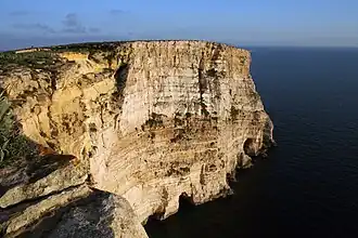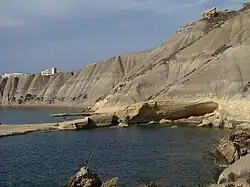 Warstwy skalne na Malcie leżą stosunkowo płasko, z wyjątkiem stref w pobliżu uskoków, w których skała została pofałdowana. Uskoki mają dwie główne orientacje, z największymi uskokami o kierunku północno-wschodnim, równoległym do linii wysp, chociaż uskoki te są odsłonięte tylko lokalnie; drugi typ to uskoki o tendencji WSW-ENE, z generalnie małymi przemieszczeniami, które dominują w topografia wysp. Największymi uskokami drugiego typu to uskok Victoria Lines na północnej Malcie i uskok Qala na południowym Gozo, mające długość około 18,5 km[1][8].