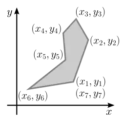 Gdzie – współrzędne wierzchołka wielokąta. Przy czym są współrzędnymi pierwszego wierzchołka.