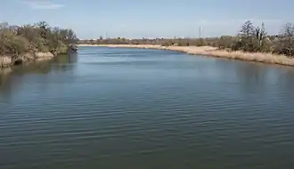 Taras zalewowy (strefa łęgowa) osiąga największą szerokość na południu miasta[7][8][4][1][6].