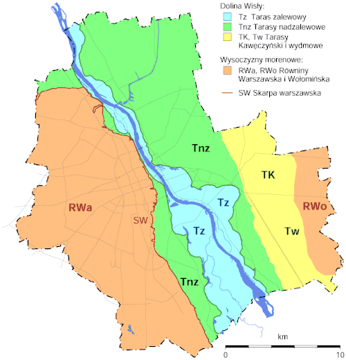 Na obszarze Warszawy wyróżniają się wśród nich tarasy nadzalewowe[7]: