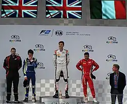 - ↑ Double home podium for George Russell in FIA Formula 2. georgerussell63.com, 2018-07-08. [dostęp 2021-05-24]. [zarchiwizowane z tego adresu (2021-05-24)]. (ang.).