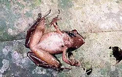 Wśród czynników wpływających negatywnie na lasy zamieszkiwane przez tego płaza IUCN wymienia[3]: