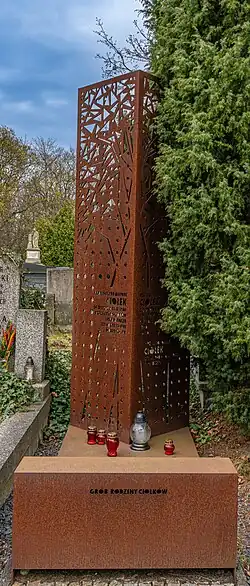 - ↑ Cmentarz Stare Powązki: KRZYSZTOF CIOŁEK, [w:] Warszawskie Zabytkowe Pomniki Nagrobne [dostęp 2020-05-15].