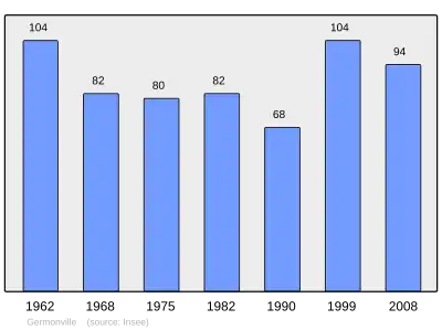 Według danych na rok 1990 gminę zamieszkiwało 68 osób, a gęstość zaludnienia wynosiła 13 osób/km² (wśród 2335 gmin Lotaryngii Germonville plasuje się na 977. miejscu pod względem liczby ludności, natomiast pod względem powierzchni na miejscu 989.).