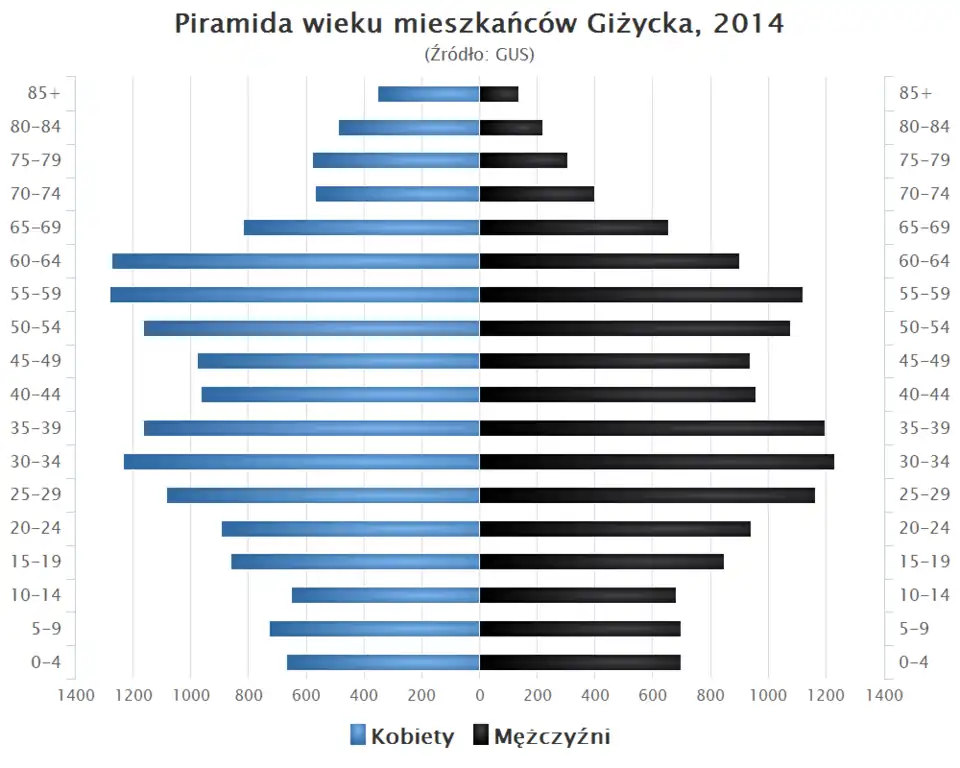 Według danych GUS z 1 stycznia 2024 r. ludność Giżycka wynosiła 27 310 osób[1].