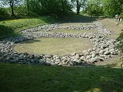 - na szczycie wału współczesna dzwonnica; jeden z dzwonów pochodzi z 1515 roku.
