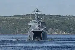 | 4 armaty uniwersalne 57 mm AK-725 (2×II) 2×IV wyrzutnie rakiet plot. bliskiego zasięgu Strieła-3 (32 rakiety) | |