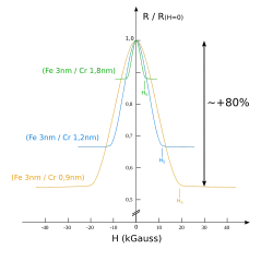 - ↑ M.N. Baibich i inni, Giant Magnetoresistance of (001)Fe/(001)Cr Magnetic Superlattices, „Physical Review Letters”, 61 (21), 1988, s. 2472–2475, DOI: 10.1103/PhysRevLett.61.2472 [dostęp 2023-11-14] (ang.).