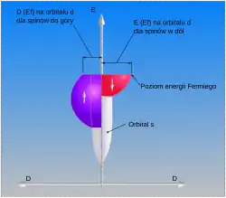 Gęstość stanów ze spinem ↑ na poziomie Fermiego jest z reguły mniejsza, niż dla elektronów ze spinem antyrównoległym, tzn. D↑(EF)<D↓(EF), a stąd i opór jest mniejszy ρ↑<ρ↓. Pomijając rozpraszanie elektronów ze zmianą spinów, rozpraszanie elektronów ze spinem ↑ i ↓ można traktować niezależnie.