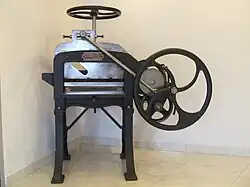 Nazwą „gilotyna” określane są także niektóre inne urządzenia do cięcia, działające na zasadzie noża poruszającego się od góry w ramie lub na zawiasie, przeznaczone do innych celów. Najczęściej używane bywają gilotyny introligatorskie do przycinania pliku arkuszy papieru, a także gilotyny do cięcia metali – szczególnie blach.