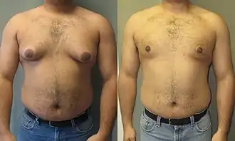 - ↑ Ginekomastia – redukcja męskich piersi, leczenie ginekomastii. [dostęp 2017-03-15]. [zarchiwizowane z tego adresu (2017-03-20)].