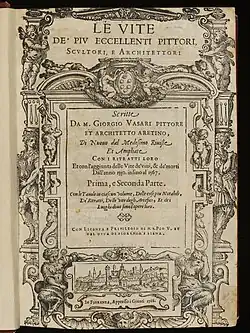 Często nazywany „pierwszym historykiem sztuki”[9]. Dziełem życia Vasariego jest dedykowany Kosmie I Medyceuszowi zbiór biografii najwybitniejszych artystów włoskich od Cimabuego do Michała Anioła (Le vite de’ più eccellenti architetti, pittori, et scultori italiani, da Cimabue insino a’ tempi nostri – pierwsze wydanie 1550; drugie w 1568 – uzupełnione[5] i z nieznacznie zmienionym tytułem Le vite dei più eccellenti pittori, scultori e architetti – pol. Żywoty najsławniejszych malarzy, rzeźbiarzy i architektów).
