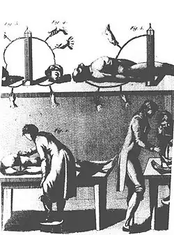 - ↑ Skazaniec, za zabójstwo żony i córki, powieszony został w więzieniu Newgate i według Newgate Calendar egzekucja odbyła się 18 stycznia; tymczasem Aldini w swoich notatkach zapisał 17 stycznia.