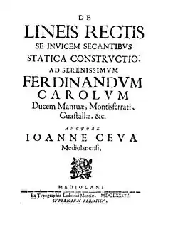 - ↑ Edizione Nazionale Mathematica Italiana - Giovanni Ceva [online], mathematica.sns.it [dostęp 2022-02-02].