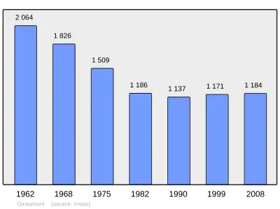 Według danych na rok 1990 gminę zamieszkiwało 1137 osób, a gęstość zaludnienia wynosiła 149 osób/km² (wśród 2335 gmin Lotaryngii Giraumont plasuje się na 334. miejscu pod względem liczby ludności, natomiast pod względem powierzchni na miejscu 778.).