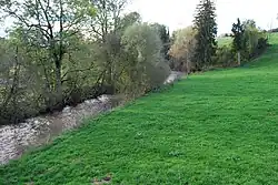 Źródła na wysokości ok. 815 m n.p.m. na skraju lasu La Râpe[1] na terenie miejscowości Mossel w gminie Ursy. Pierwszy prawobrzeżny dopływ nosi nazwę Riau d'Enfer. Spływa w kierunku północno-wschodnim, wyznaczając granicę między gminami Mézières i Romont. W Romont przyjmuje też swój lewobrzeżny dopływ Le Glaney (690 m n.p.m.). Płynie początkowo dość prostym korytem, jednak poniżej Villaz-St-Pierre skręca ku wschodowi i zaczyna meandrować. Tu przyjmuje swoje prawobrzeżne dopływy: La Neirigue (638 m n.p.m.), Ruisseau du Glèbe (630 m n.p.m.) i La Longivue (619 m n.p.m.). Jej koryto ponownie skręca ku północnemu wschodowi i jednocześnie znacząco się pogłębia, a urwiste brzegi w licznych zakolach osiagają wysokość do 30-40 m. W Matran przyjmuje lewobrzeżny dopływ Riau de la Bagne (577 m n.p.m.), przepływa pod kamiennym, łukowym mostem z początków XVI w. w Ste-Apolline[2], a następnie pod równie oryginalnym, wysokim mostem zwanym Pont de la Glâne, po czym tuż za nim w Villars-sur-Glâne, na wysokości 599 m n.p.m., uchodzi do Sarine.