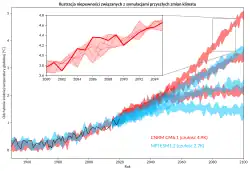 Naukowcy badają zmiany klimatyczne, używając modeli numerycznych klimatu. Modele te oparte są na podstawowych zasadach dynamiki płynów, transportu promieniowania i innych procesów, a rozwiązywane z użyciem metod numerycznych. Procesy symulowane są w sposób przybliżony, ze względu na niedokładność i niekompletność danych wejściowych, ograniczenia w możliwościach komputerów i złożoność systemu klimatycznego. Współczesne modele klimatu uwzględniają procesy wymiany atmosfery i oceanu, symulują pokrywy lodowe na lądzie i w oceanie, roślinność i fitoplankton, a także aerozole atmosferyczne, cykle biogeochemiczne i reakcje chemiczne zachodzące w atmosferze[54]. Modele te przewidują, że efektem zwiększonych emisji gazów cieplarnianych jest ocieplenie klimatu, choć ze względu na niepewności związane z wielkością symulowanych sprzężeń zwrotnych intensywność ocieplenia różni się w różnych modelach. Drugim podstawowym źródłem niepewności jest przyszła koncentracja gazów cieplarnianych w atmosferze, a także rola innych wymuszeń antropogenicznych (jak aerozole), oraz w mniejszym stopniu, czynników naturalnych (jak zmiany aktywności słonecznej, erupcje wulkanów czy wewnętrzna zmienność klimatu)[7].