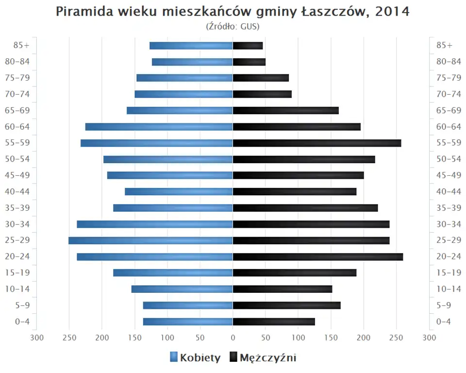 - Piramida wieku mieszkańców gminy Łaszczów w 2014 roku[1].