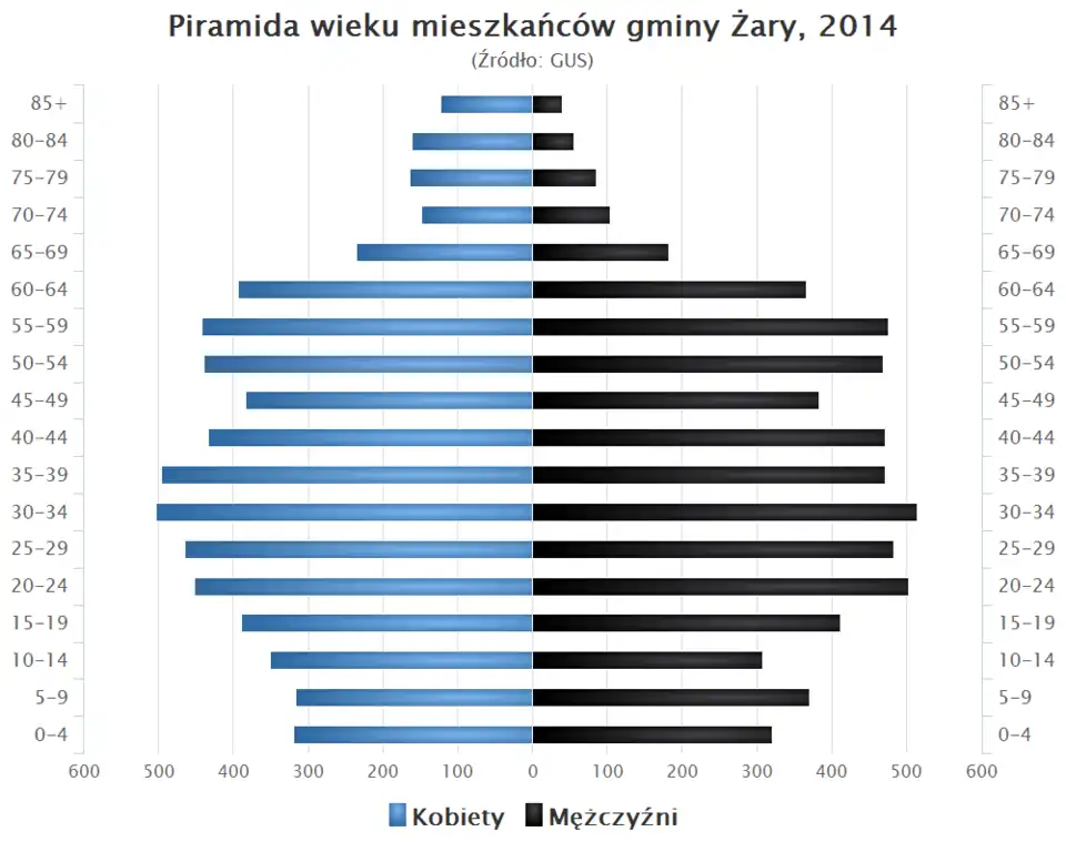 - Piramida wieku mieszkańców gminy Żary w 2014 roku[1].