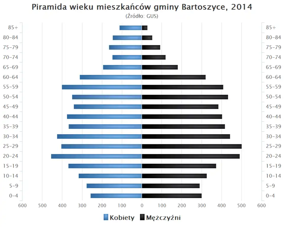 - Piramida wieku mieszkańców gminy Bartoszyce w 2014 roku[1].