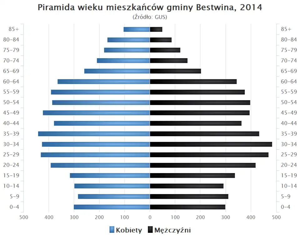 - Piramida wieku mieszkańców gminy Bestwina w 2014 roku[1].