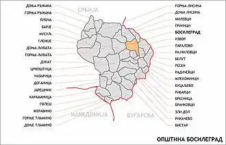 W gminie Bosilegrad istnieje jeden ośrodek miejski (Bosilegrad) i 36 wsi. Są to[6]: