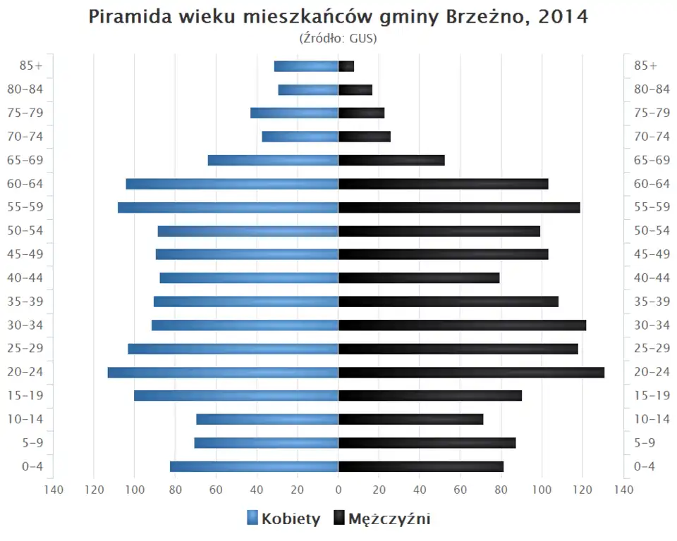 - Piramida wieku mieszkańców gminy Brzeżno w 2014 roku[5].