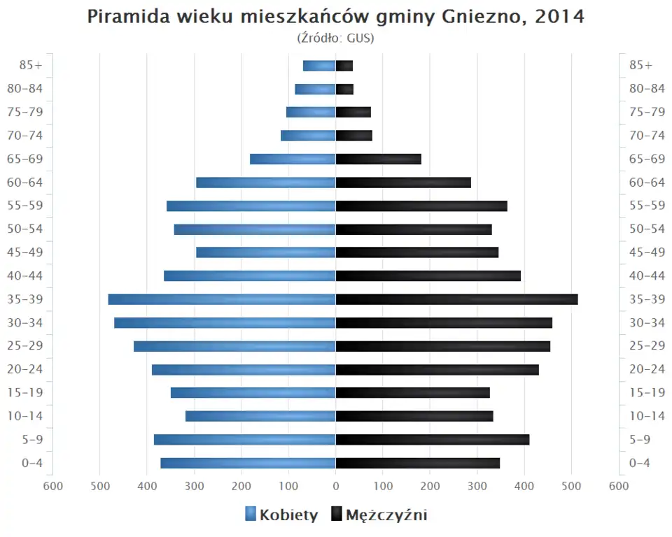 - Piramida wieku mieszkańców gminy Gniezno w 2014 roku[1].