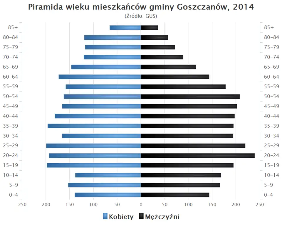 - Piramida wieku mieszkańców gminy Goszczanów w 2014 roku[1].