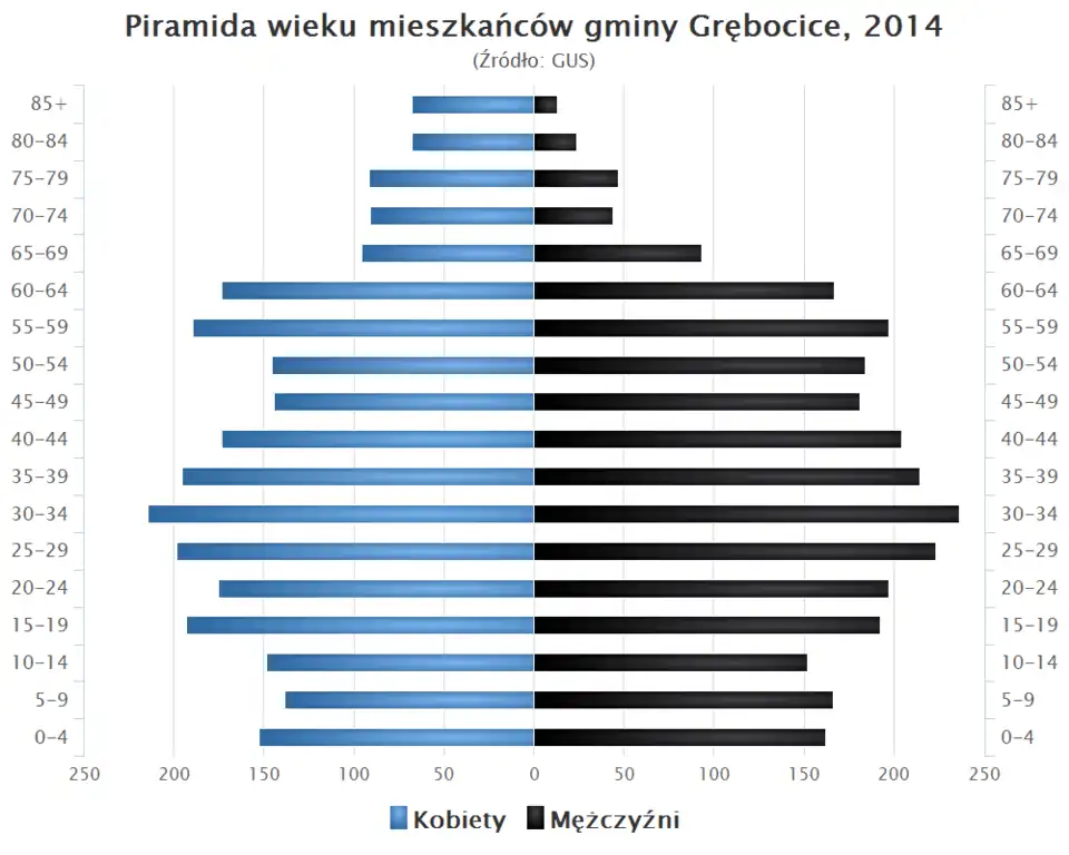 - Piramida wieku mieszkańców gminy Grębocice w 2014 roku[1].