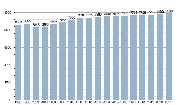Według danych z 30 czerwca 2006[4] gminę zamieszkiwało 6961 osób. Natomiast według danych z 31 grudnia 2021 roku[5] gminę zamieszkiwało 7904 osób.