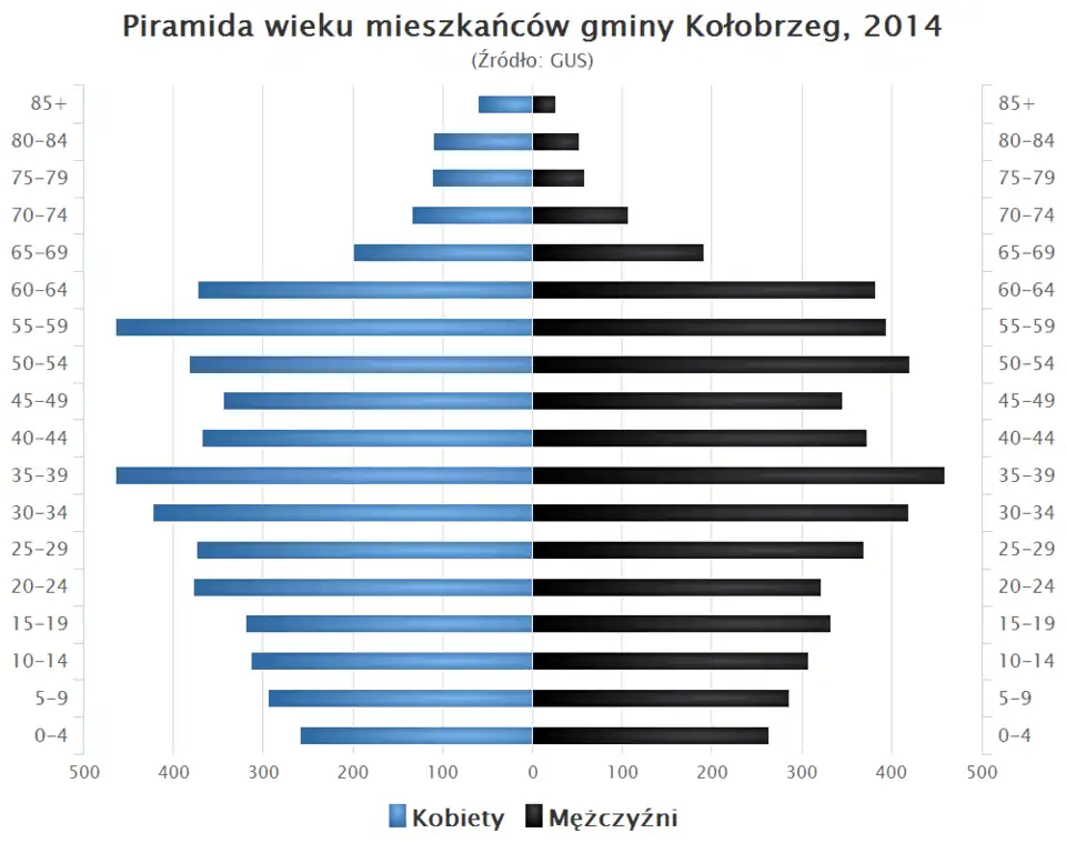 - Piramida wieku mieszkańców gminy Kołobrzeg w 2014 roku[4].