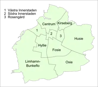 - ↑ Malmö stad: Stadsområdesförvaltningar. [dostęp 2016-01-15]. [zarchiwizowane z tego adresu (2016-04-15)]. (szw.).