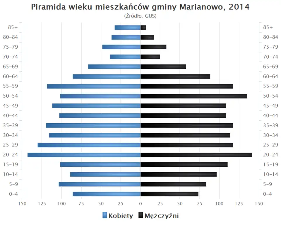 - Piramida wieku mieszkańców gminy Marianowo w 2014 roku[1].