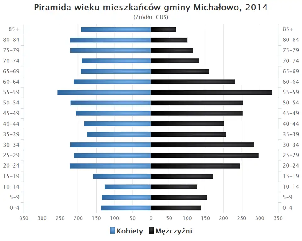 - Piramida wieku mieszkańców gminy Michałowo w 2014 roku[1].