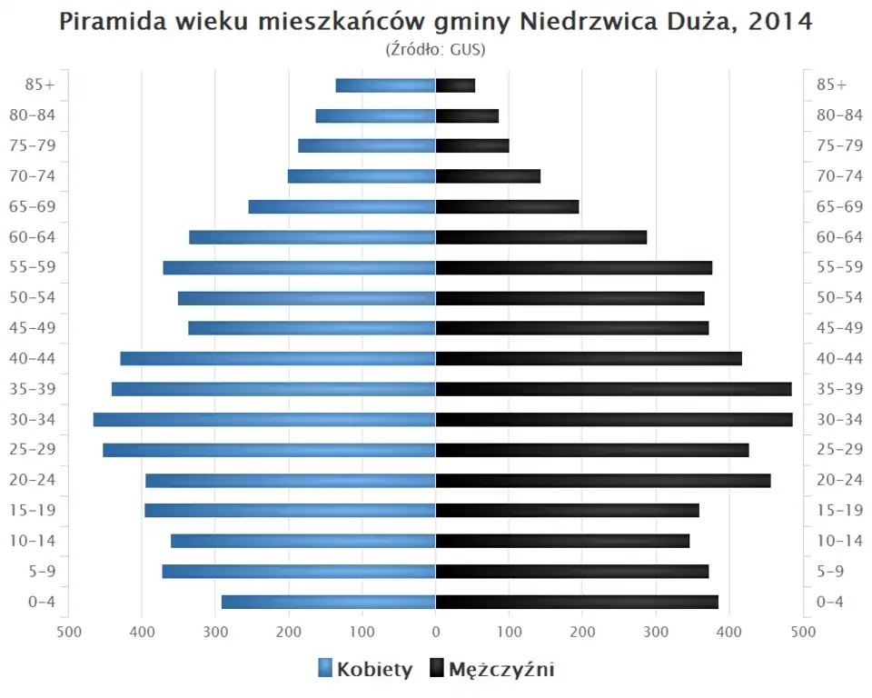 - Piramida wieku mieszkańców gminy Niedrzwica Duża w 2014 roku[7].