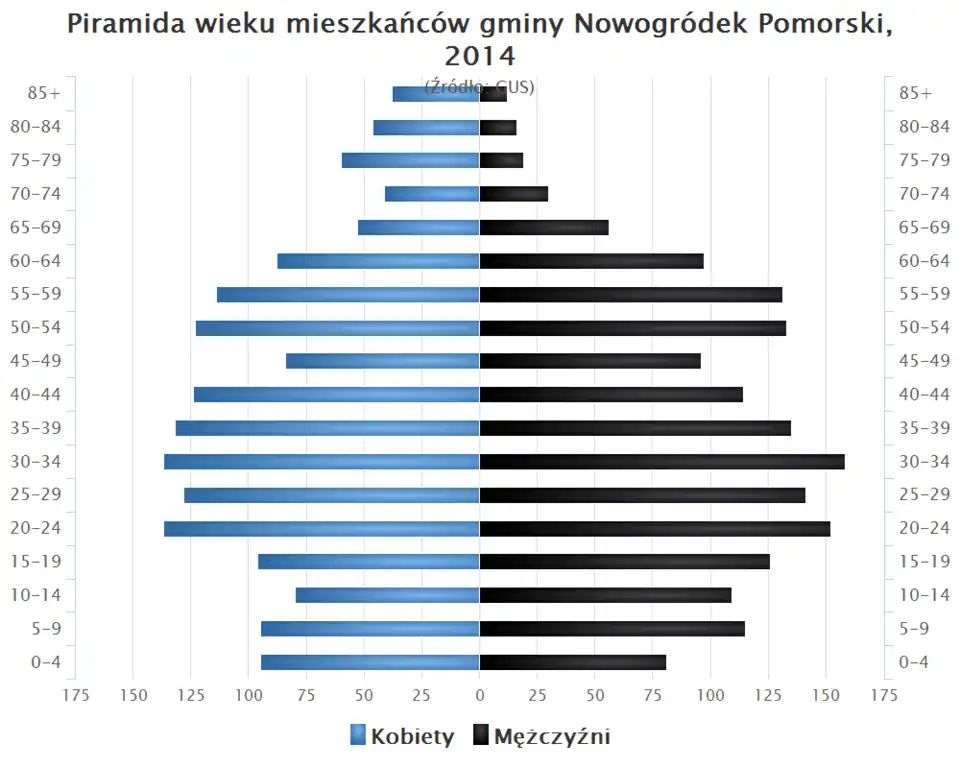 - Piramida wieku mieszkańców gminy Nowogródek Pomorski w 2014 roku[1].