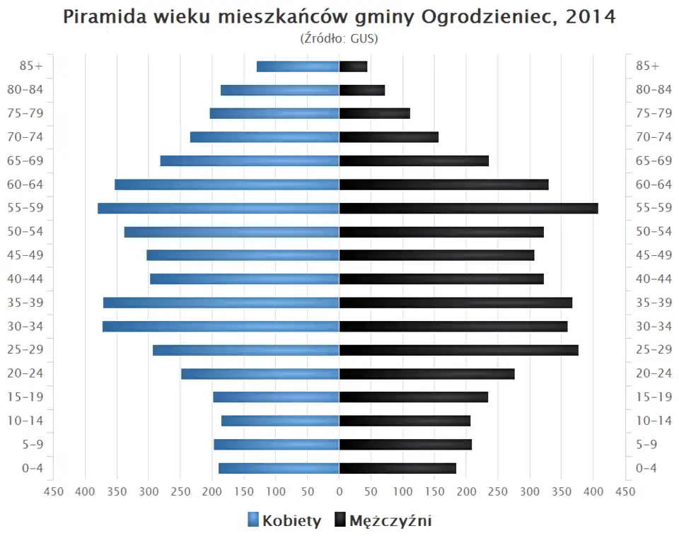 - Piramida wieku mieszkańców gminy Ogrodzieniec w 2014 roku[1].