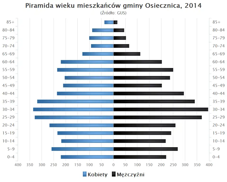 - Piramida wieku mieszkańców gminy Osiecznica w 2014 roku[5].