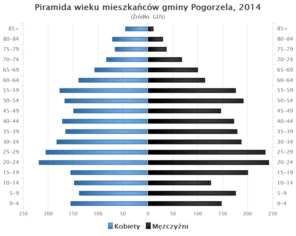 - Piramida wieku mieszkańców gminy Pogorzela w 2014 roku[1].