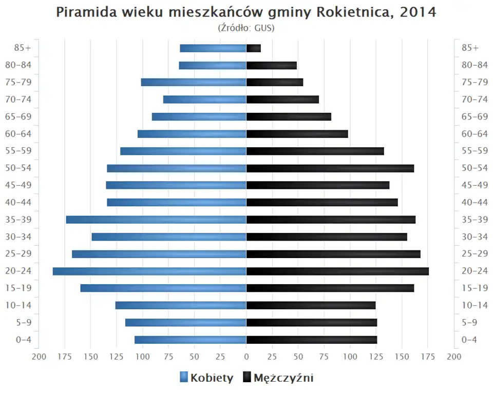 - Piramida wieku mieszkańców gminy Rokietnica w 2014 roku[1].