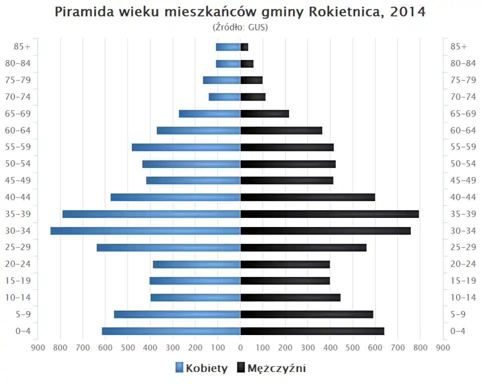 - Piramida wieku mieszkańców gminy Rokietnica w 2014 roku[2].