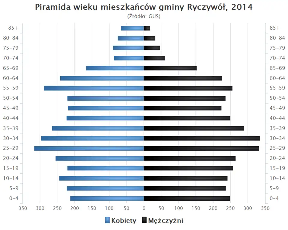 - Piramida wieku mieszkańców gminy Ryczywół w 2014 roku[1].