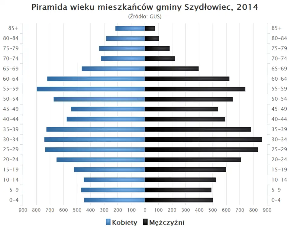 - Piramida wieku mieszkańców gminy Szydłowiec w 2014 roku[8].