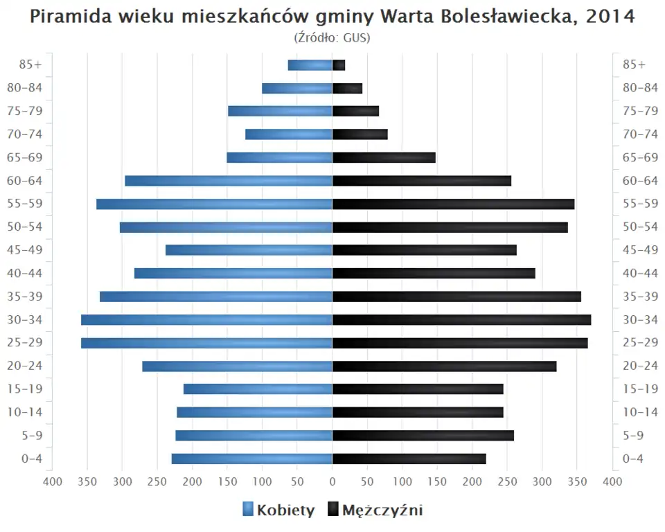 - Piramida wieku mieszkańców gminy Warta Bolesławiecka w 2014 roku[6].