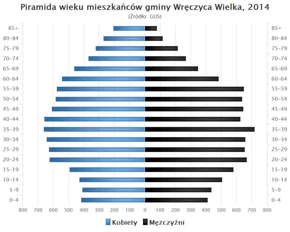 - Piramida wieku mieszkańców gminy Wręczyca Wielka w 2014 roku[1].